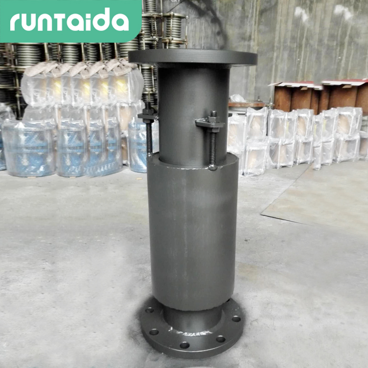 復式波紋補償器由中間接管連接兩個(gè)波紋管及端管、拉桿、端板和球面與錐面墊圈等結構件組成,長(cháng)拉桿貫穿兩組波紋管。在外套筒的保護下,內部由接管連接兩組波紋管和撐環(huán)以及導流筒組成。有了外套筒的保護,可用于地埋管道使用。